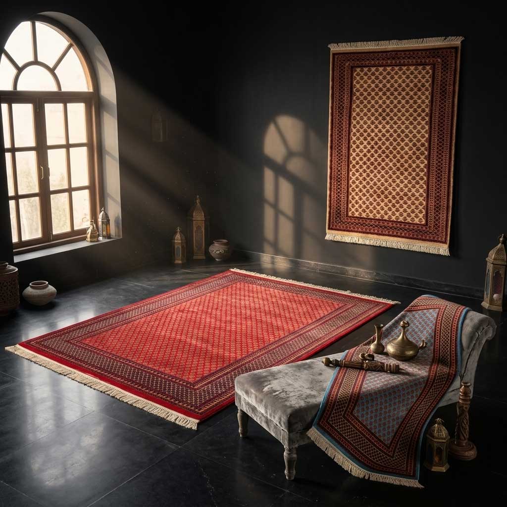 Timeless patterns inspired by Persian, Kashmiri, and Mughal artistry. These pieces feature rich colors and intricate designs that add heritage and sophistication to any space.