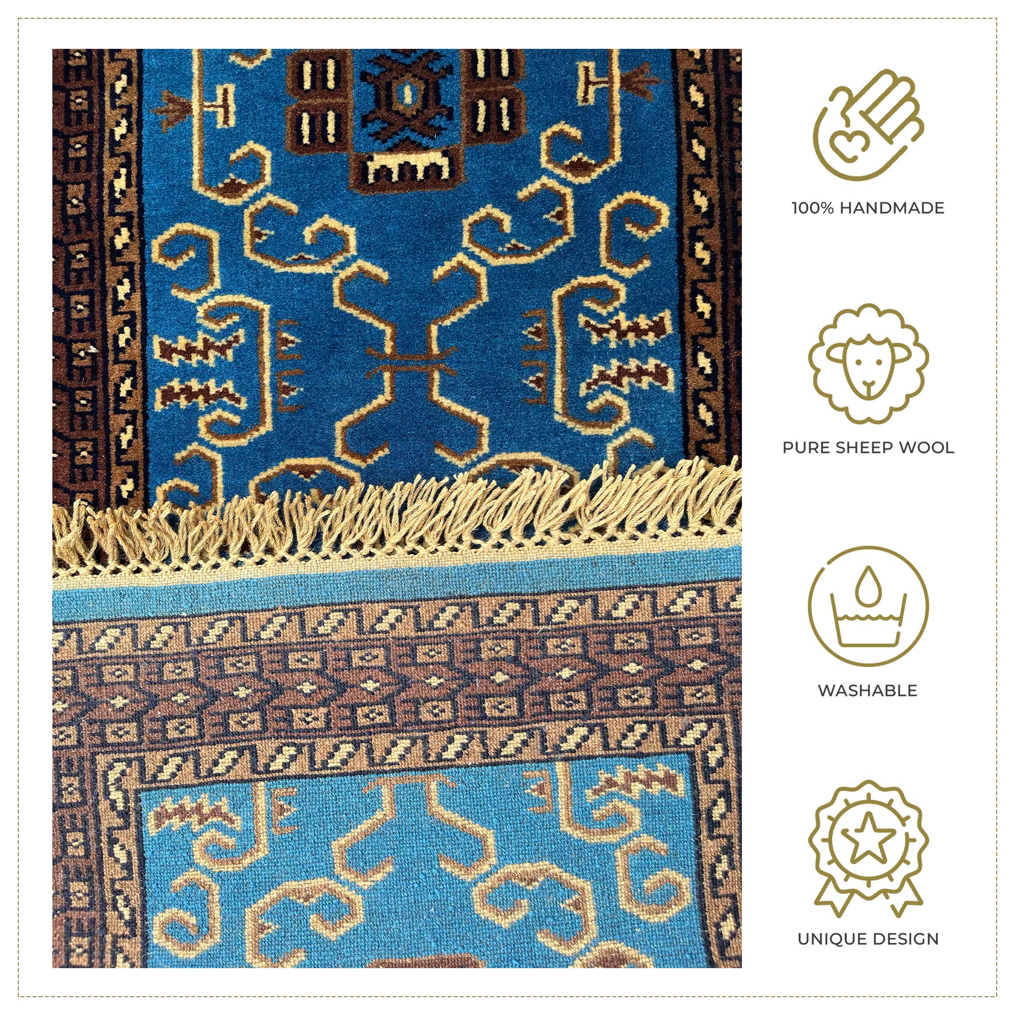 - 100% hand-knotted rugs.