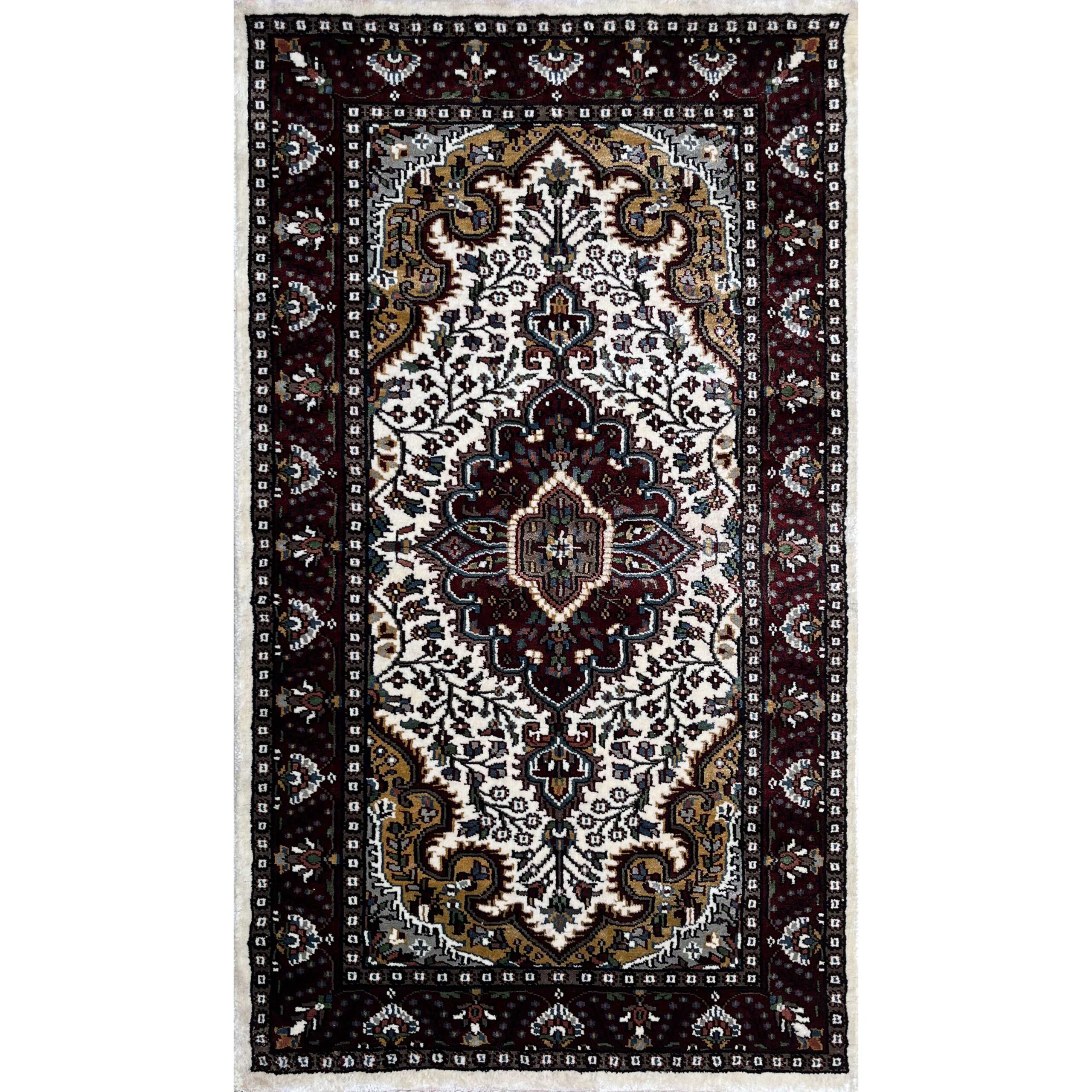 This 2.5×4 feet Hand Knotted Viscose Rug Indopersian White and Multi is carefully hand knotted by skilled artisans using fine materials. The design reflects traditional craftsmanship blended with modern aesthetics, making it ideal for living rooms, bedrooms, entryways, or offices. Durable, soft, and elegant, this rug adds warmth and character to any interior.