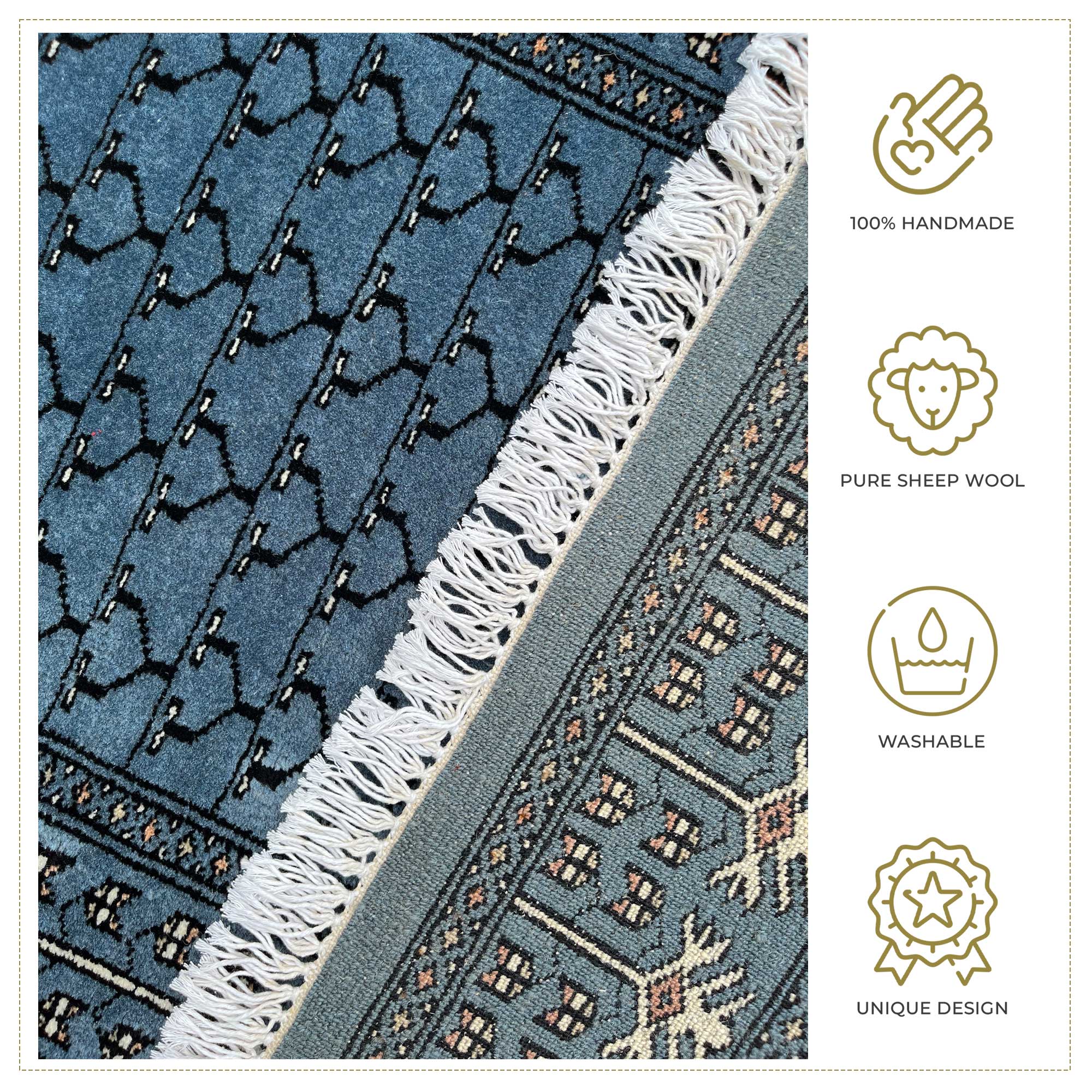 • Each rug is made with passion, intricacy, and fine detailing—making it unique and long-lasting.