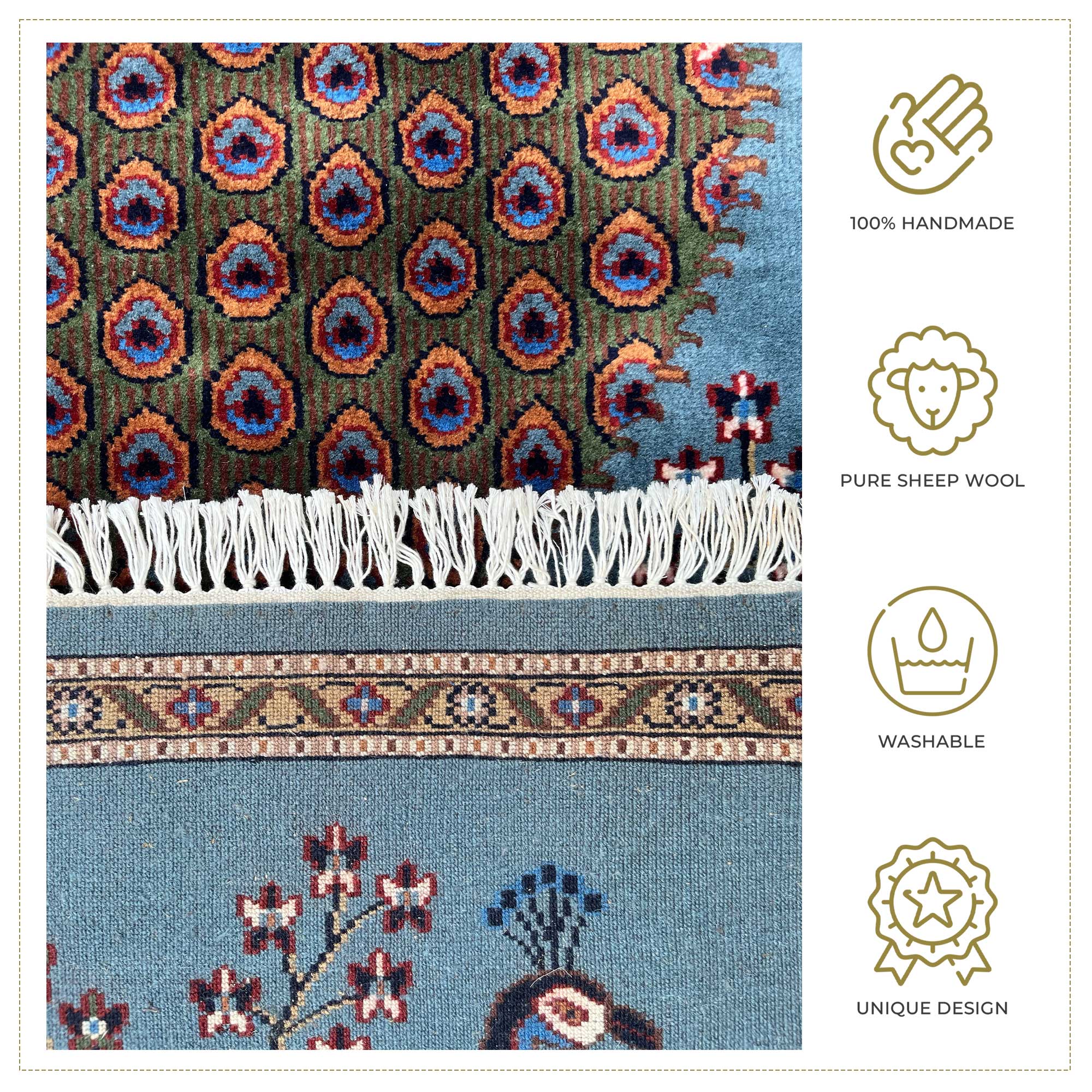 • Each rug is made with passion, intricacy, and fine detailing—making it unique and long-lasting.