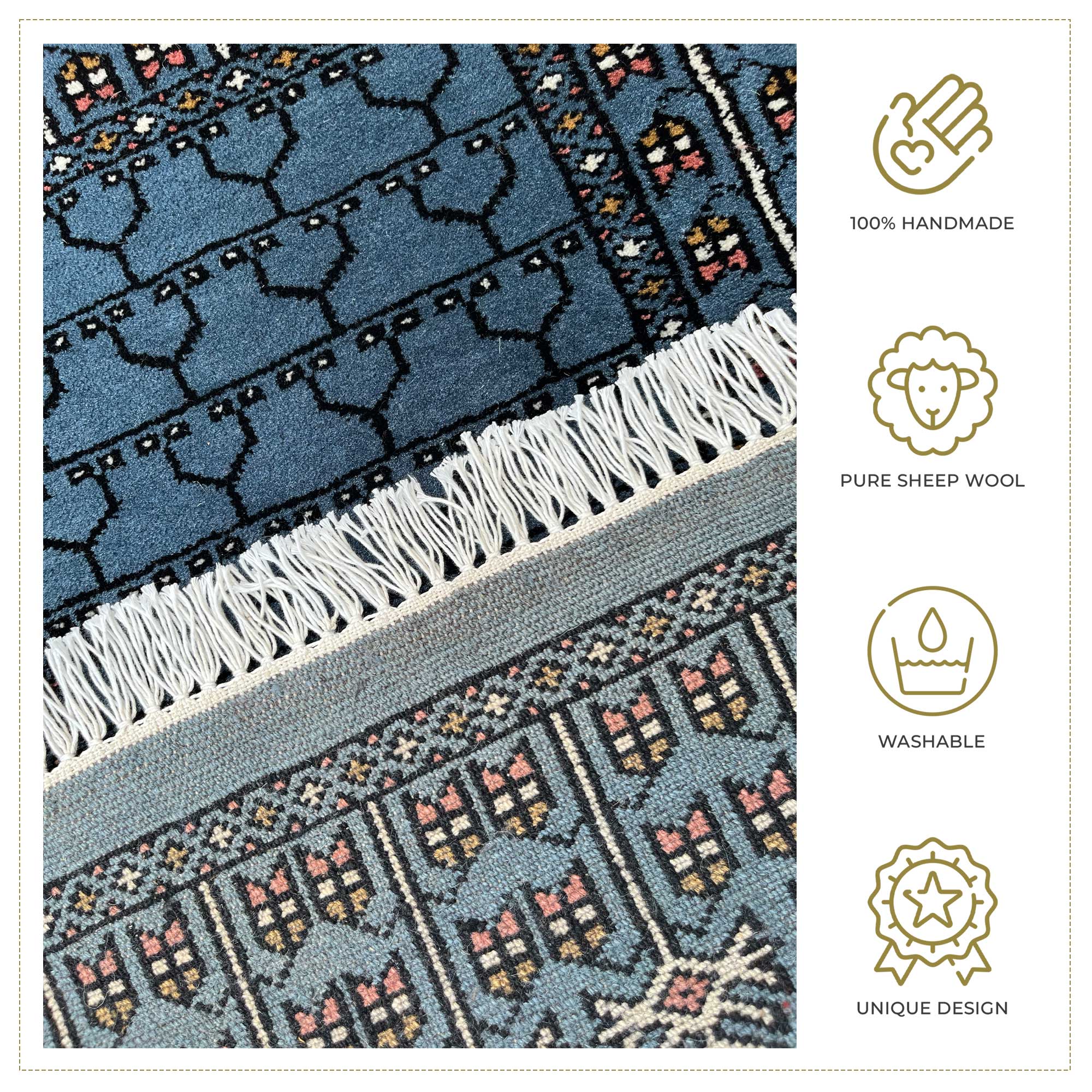 • Each carpet is made with passion, intricacy, and fine detailing—making it unique and long-lasting.