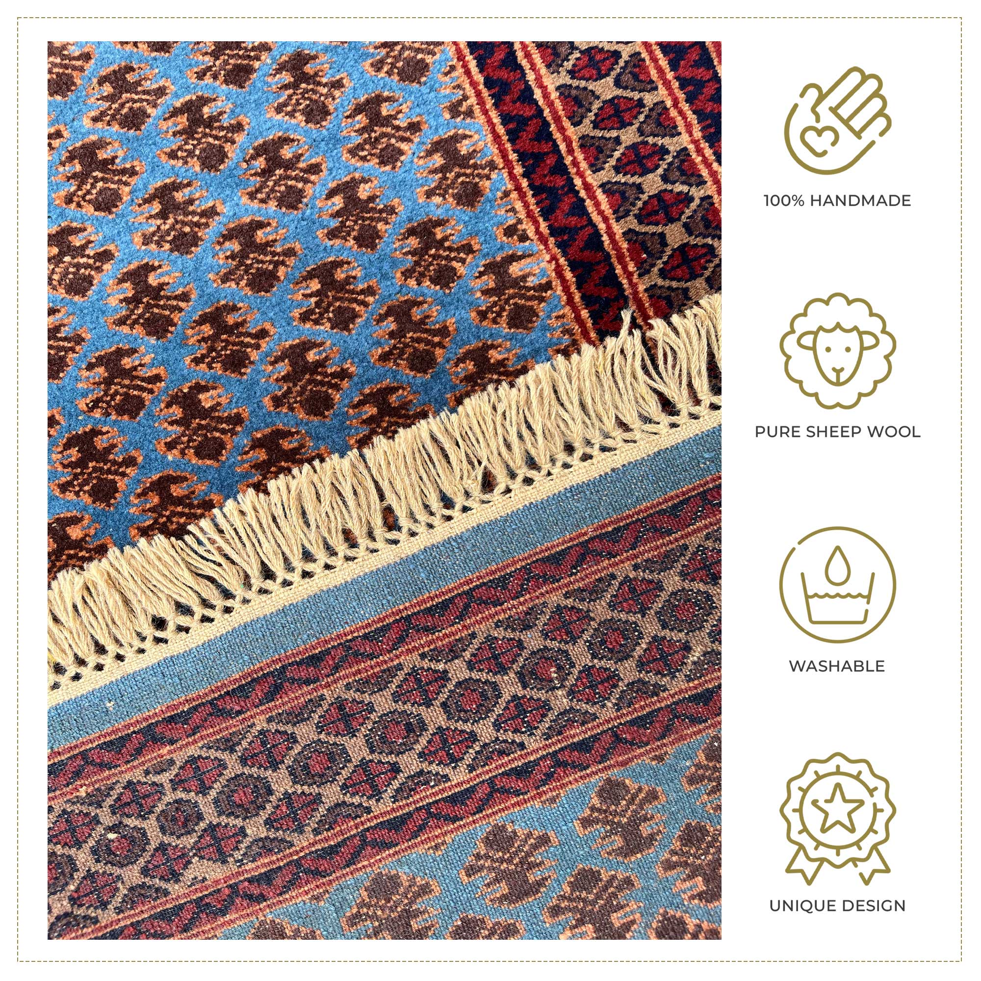 - 100% hand-knotted rugs.