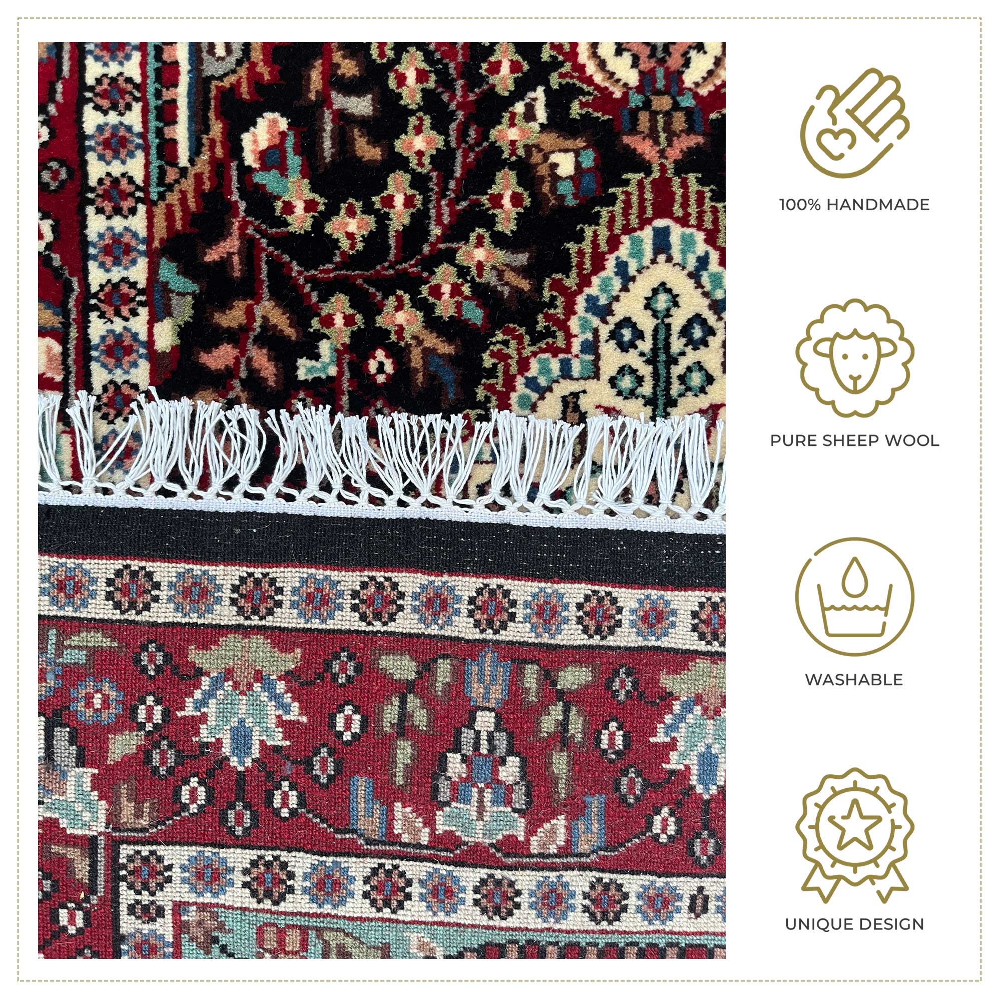 - 100% hand-knotted rugs.