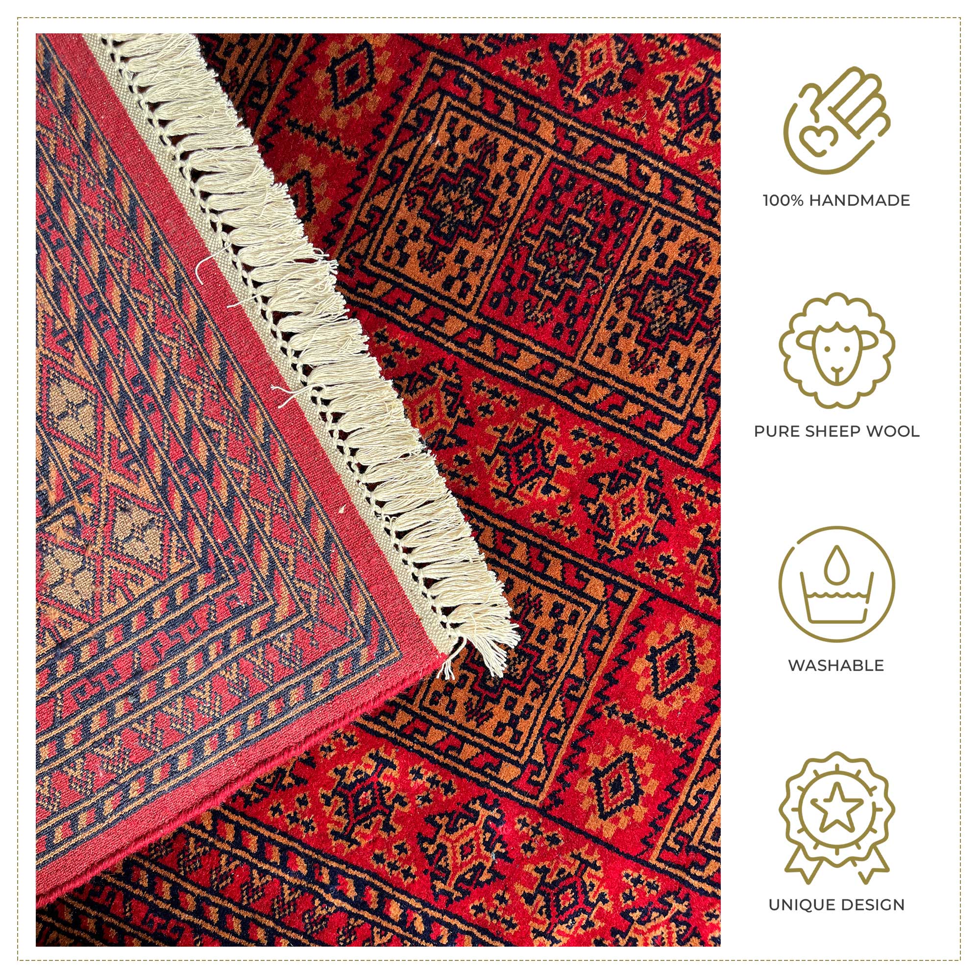 • Each rug is made with passion, intricacy, and fine detailing—making it unique and long-lasting.